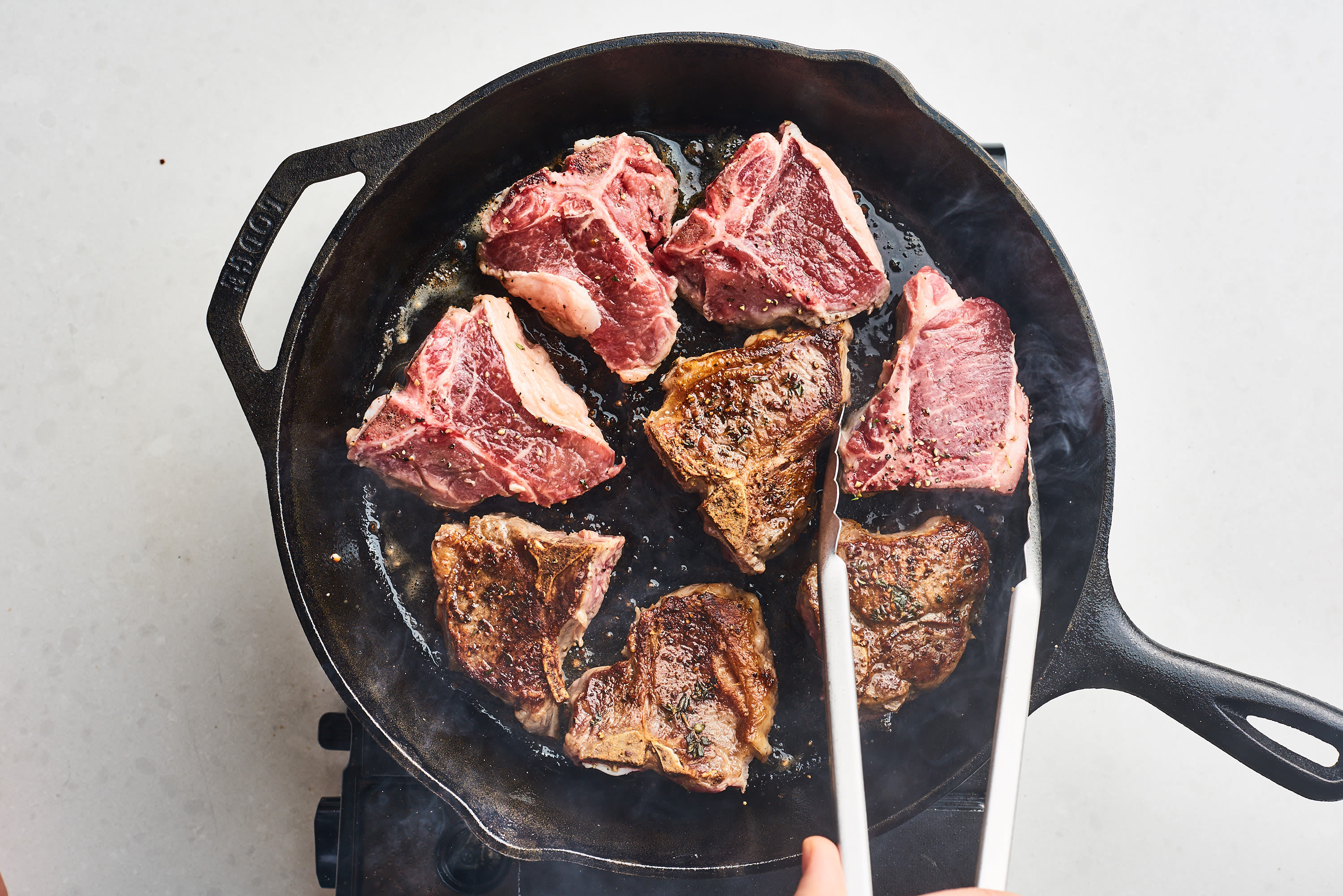 The butter adds such wonderful flavor to the crust that develops on the lamb chops. Here's a great recipe to start with if you're just learning how to cook lamb chops on the stove—which is, in my opinion, the easiest method. Return your lamb chops to the skillet or dutch oven. Lamb loin chops taste best when cooked to medium, but please don't overcook them, because the meat is tender and will turn chewy and dry. I told you not to waste it. Lamb chops are generally rib chops, which are cut from the ribs of the lamb, and they often have the rib bone. The delectable flavors of this lamb will surely. Smash some fresh garlic cloves to add to the pan. While the color is developing on the outside, place a dutch oven or roasting pan on the grill (you could do this step on the stove top). Add a couple tablespoons of the chopped onion you have left over. Place your skillet over a medium flame on the stove. Lamb is a very tender cut of meat, which many people enjoy, and while it tastes similar to beef, it also has a slight gamey flavor. Use a probe thermometer, if you have one.
